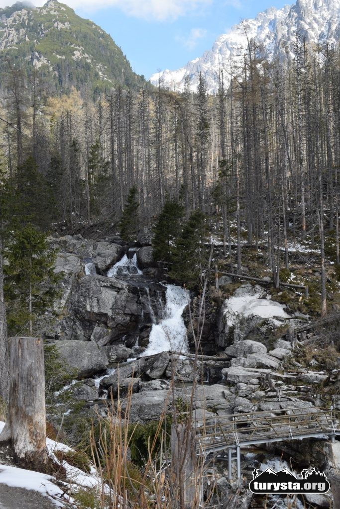 Potem ⇒ szlakiem czerwonym udaliśmy się w stronę Wodospadów Zimnej Wody (Vodopády Studeného Potoka), oddalonych o 1,2 km od Hrebienoka. Po drodze mijaliśmy schronisko – Bilikova Chata. Po dotarciu do wodospadów i odpoczynku, wyruszyliśmy w drogę powrotną. Na parking wróciliśmy na godzinę 10.15.