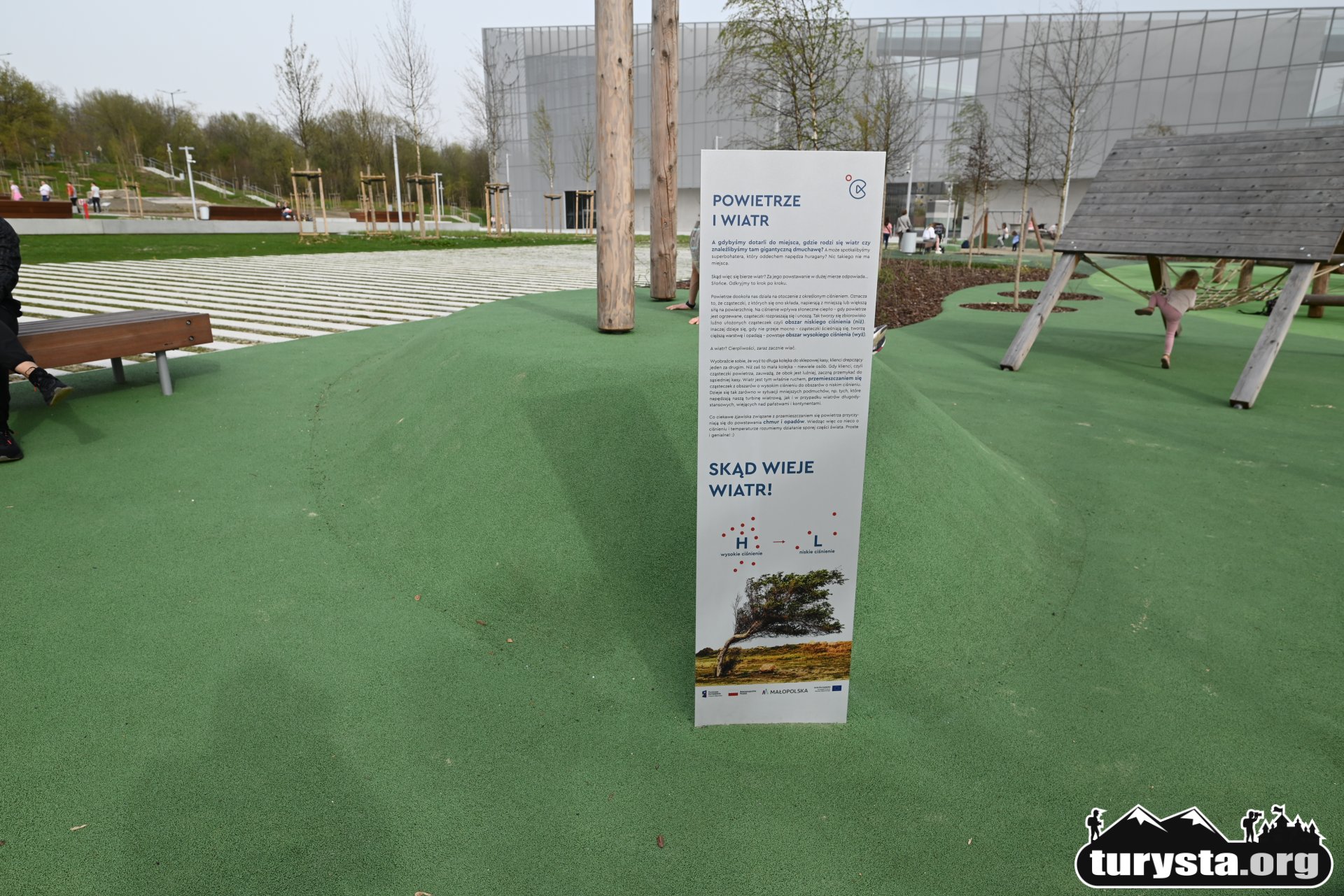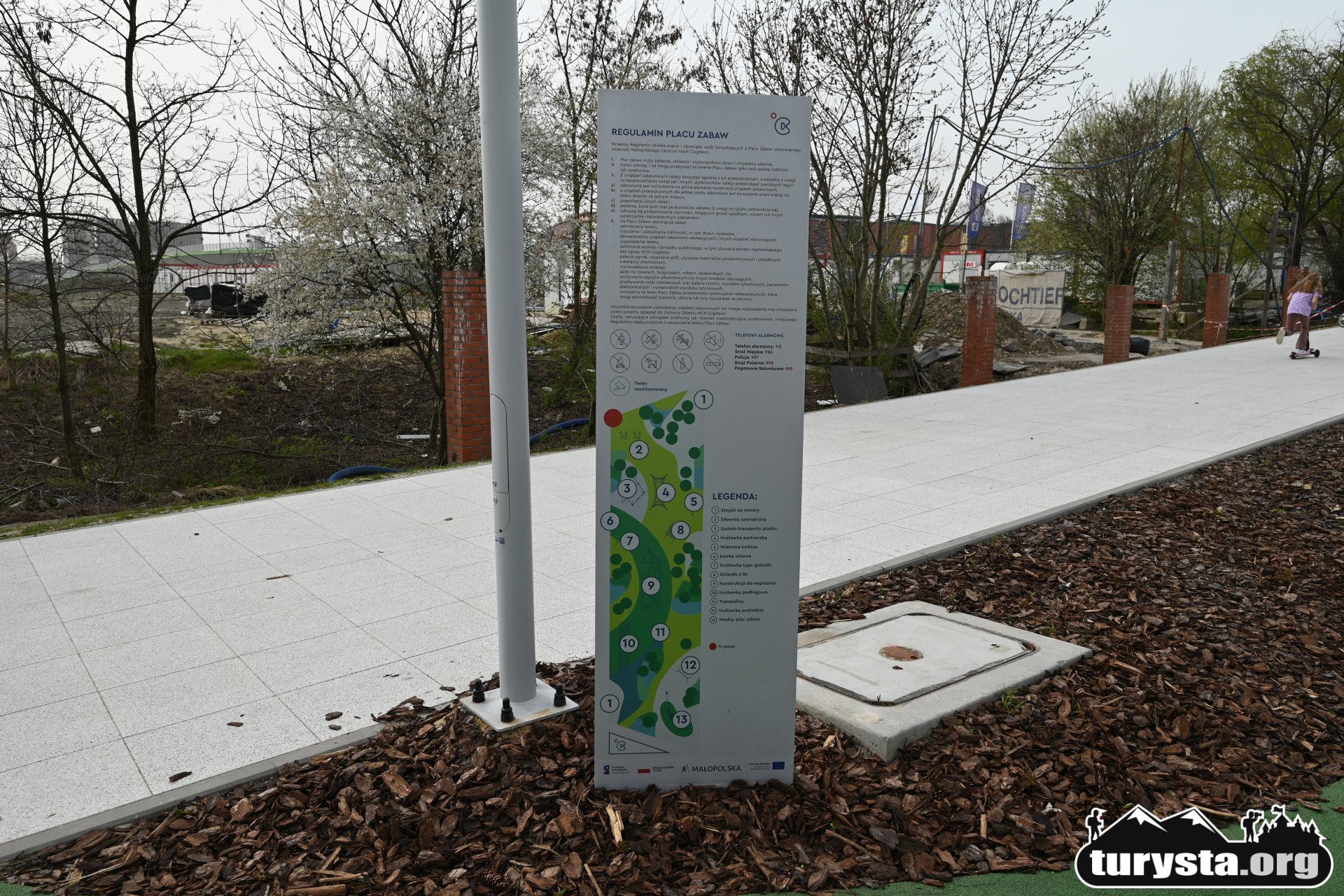Nowy plac zabaw, zlokalizowany przy al. Bora-Komorowskiego, nieopodal Małopolskiego Centrum Nauki Cogiteon jest już dostępny dla wszystkich i oferuje szeroki zakres atrakcji edukacyjnych. Podłoże placu zabaw zostało wykonane głównie z bezpiecznej, miękkiej nawierzchni, a także z piasku i kamieni. Plac zabaw charakteryzuje się sporymi rozmiarami i oferuje wiele różnorodnych atrakcji, co sprawia, że każde dziecko powinno znaleźć coś dla siebie. Dla młodszych dostępne są obszary z piaskiem i huśtawki, natomiast starsze dzieci mogą korzystać z drewnianych konstrukcji do wspinaczki oraz systemów wodnych.