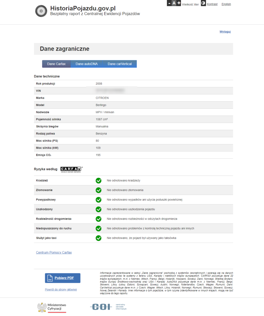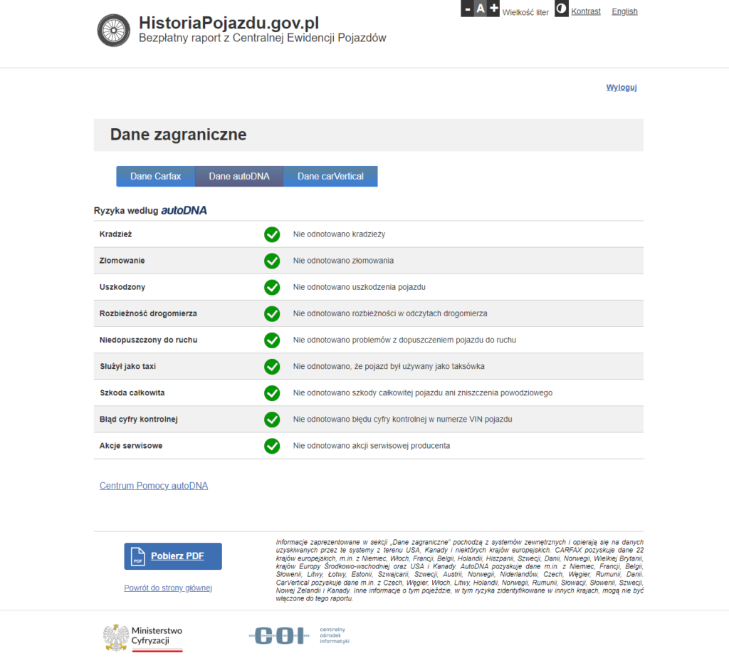 Tym sposobem też możemy dowiedzieć się czy z autem wszystko w porządku pod różnymi względami. Przykładowy raport poniżej: